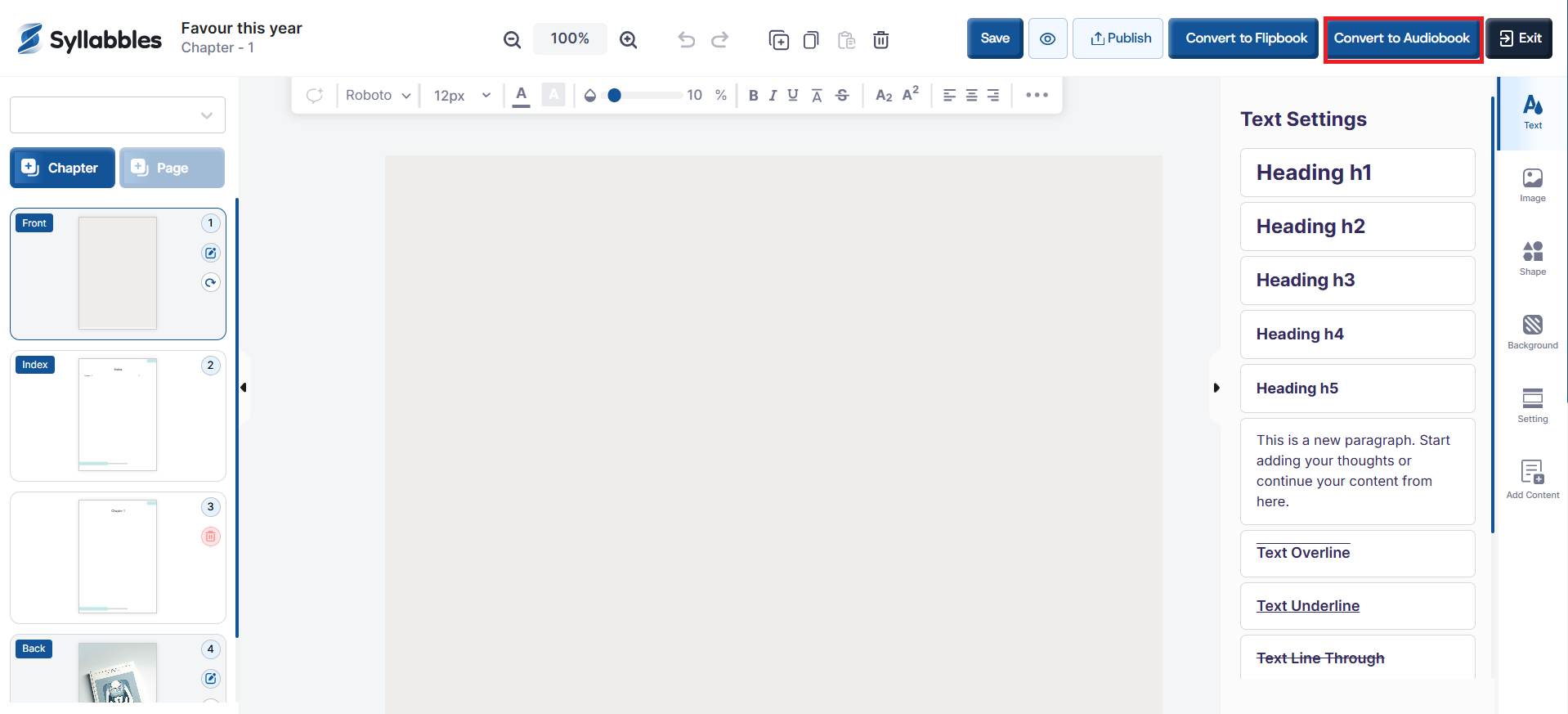 Creating an audiobook in Syllables is simple. This tutorial will walk you through the steps to turn your written content into audio format for easy listening.