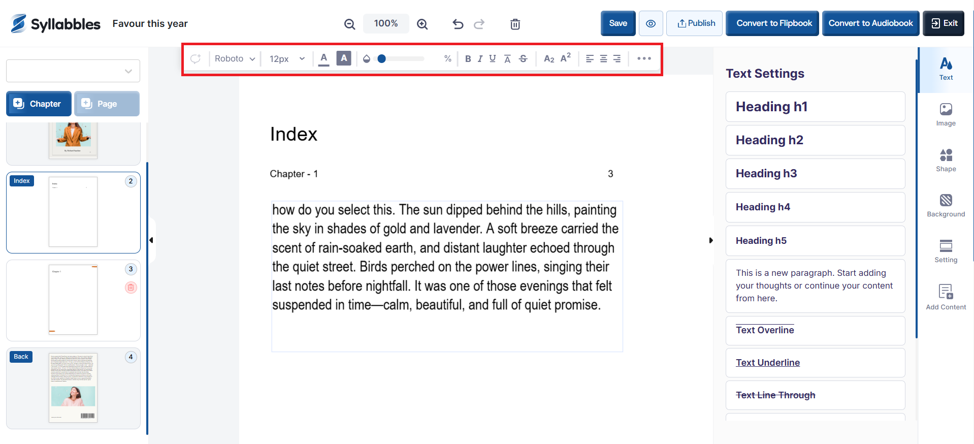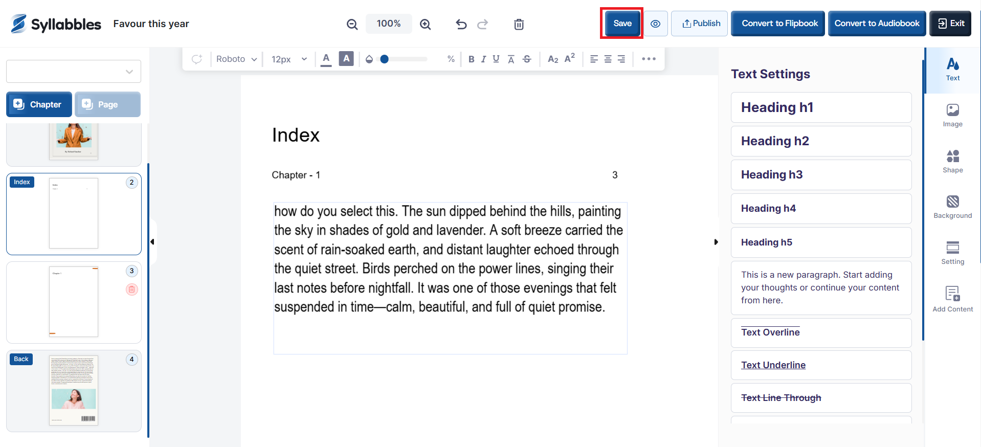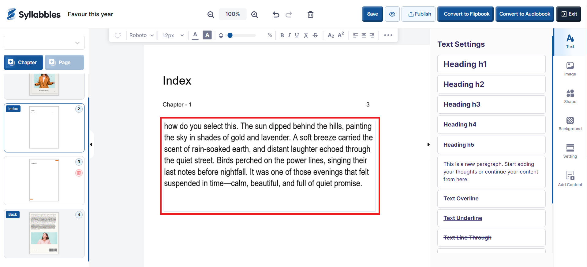 Once you're in the editor, click directly on the text box or paragraph you want to edit. Once selected, you’ll see a blinking cursor or a highlighted area showing that the text is active. You can then go ahead to edit text or paragraph.